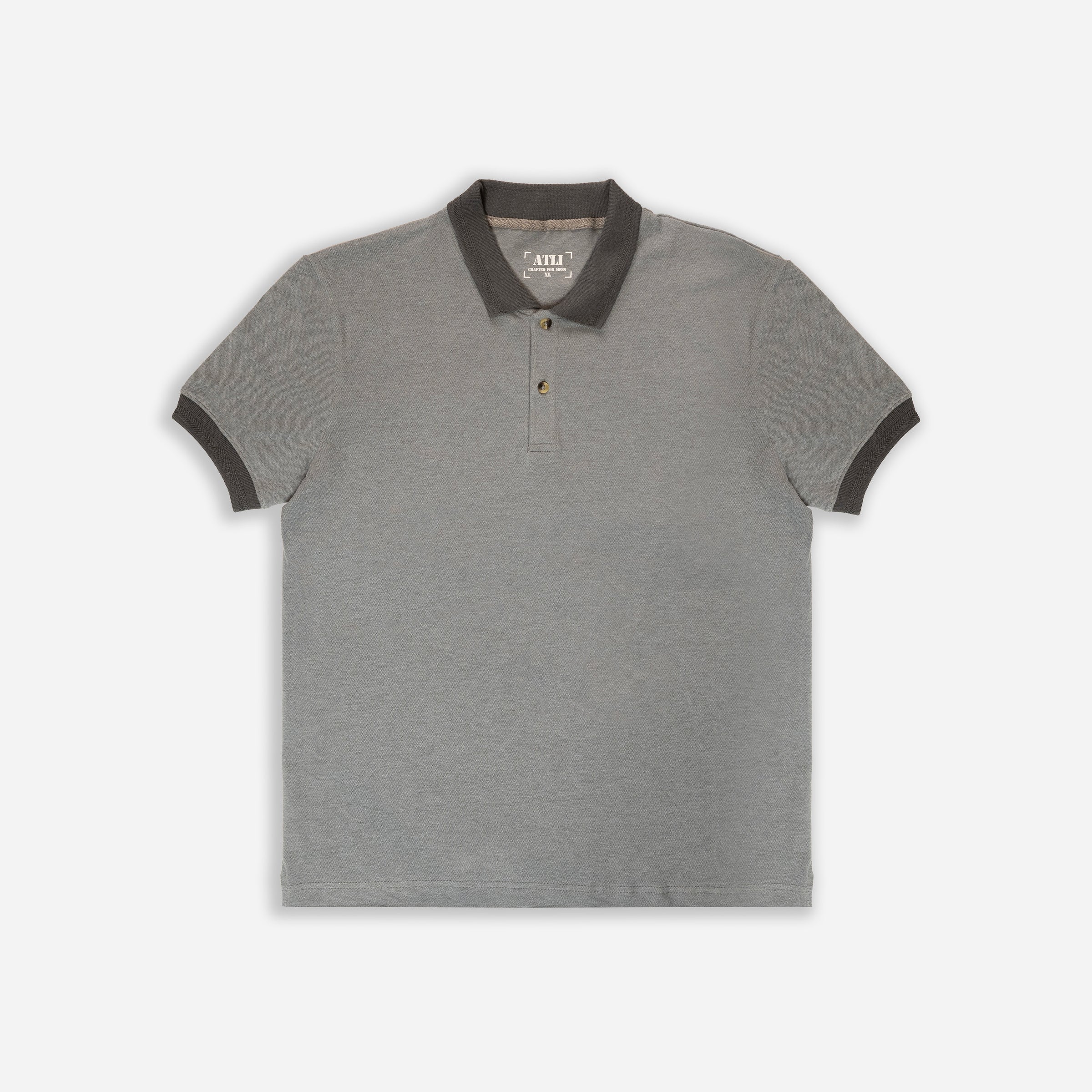 Men’s Solid Grey Cotton Polo T-Shirt with Contrast Collar