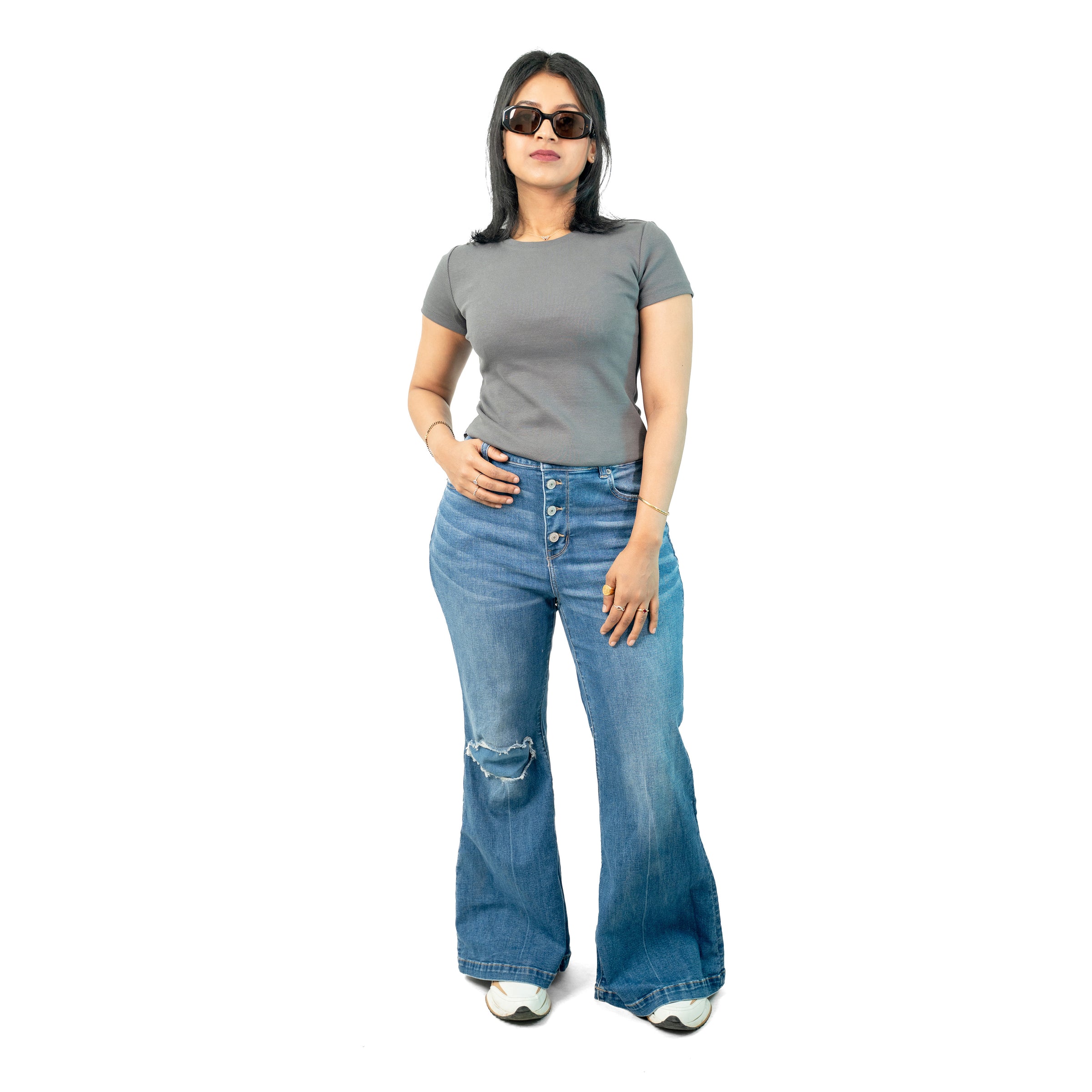 Indulge in the luxurious feel of our grey ribbed crew neck top, made with premium cotton blossom fabric. The finely ribbed texture adds a touch of sophistication, while the soft cotton ensures all-day comfort.